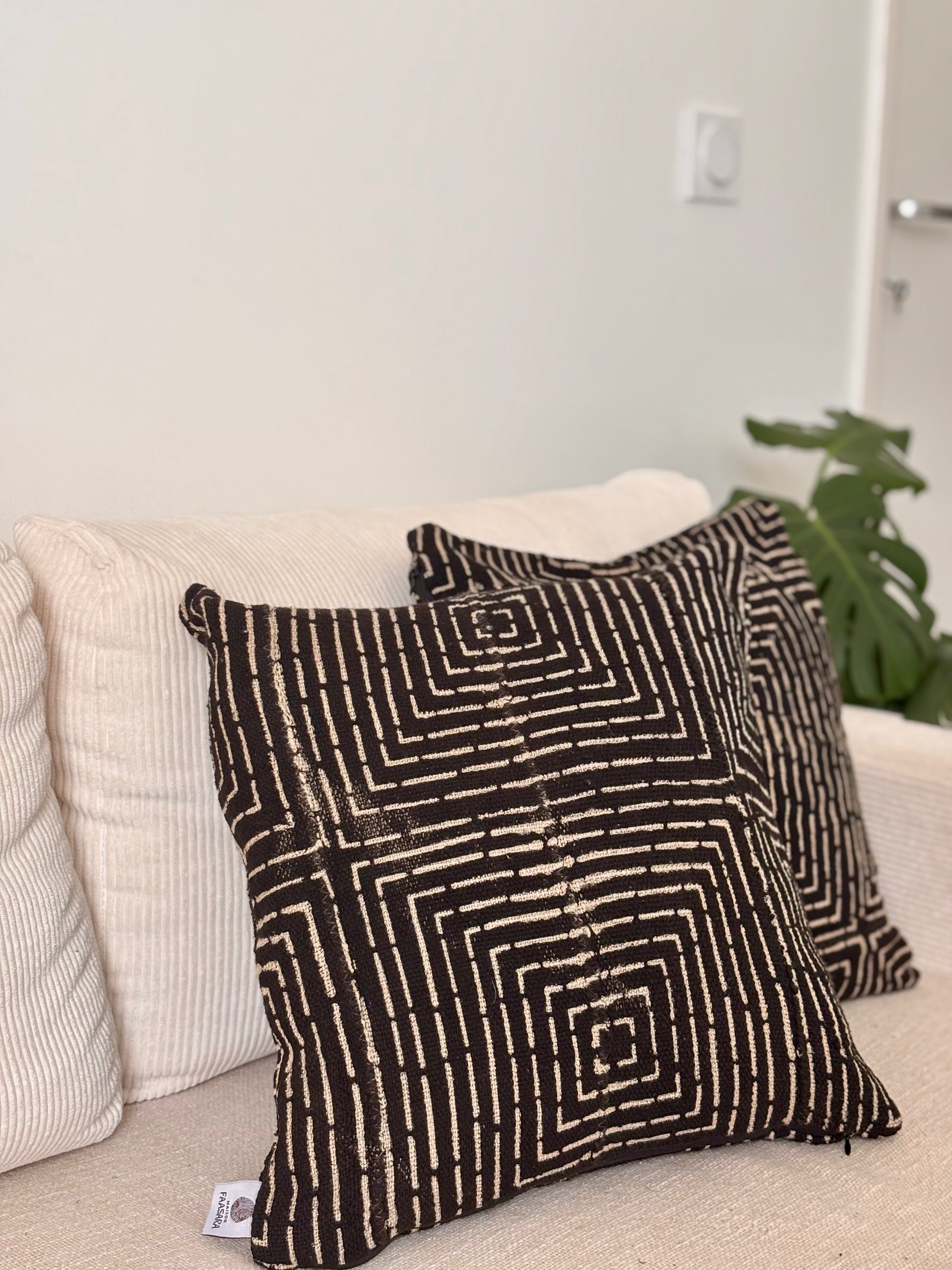 AYA Noir - Lot de 2 housses de coussin bogolan
